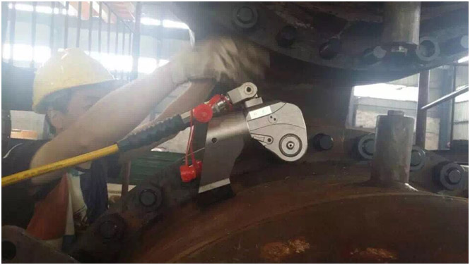 聚頂機械針對化工廠裝備公司的情況,派遣了有現(xiàn)場經(jīng)驗的技術(shù)員前往查看,現(xiàn)場工況相對不是很復(fù)雜,標配的液壓扳手就能解決,但也存在較為特殊的情況,如法蘭連接處不是平面,夾角不是垂直或者工作空間狹小等情況,聚頂機械公司從用戶的角度出發(fā),給出的解決方案不光滿足工作要求,還要為客戶節(jié)約成本,所以針對化工廠裝備公司常規(guī)以及特殊的現(xiàn)場情況聚頂機械公司采用一套液壓扳手就能解決全部問題的方案,得到客戶的高度認可。由于現(xiàn)場工人不會使用液壓扳手,聚頂機械技術(shù)人員就手把手教操作人員,直到都能熟練操作為止,同時在現(xiàn)場工人的要求下,用液壓扳手裝配一套壓力容器,最后還要加水打壓檢測是否泄漏,一切都超出了工人們的預(yù)料,大家都說以后有了液壓扳手他們心里有底多了,以后就不再全部依賴“風炮”了,技術(shù)主管人員也說使用液壓扳手后交付給客戶的產(chǎn)品,他們就放心了。