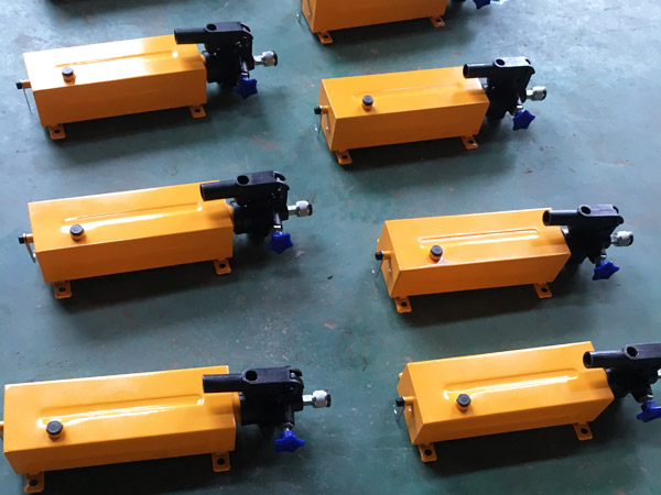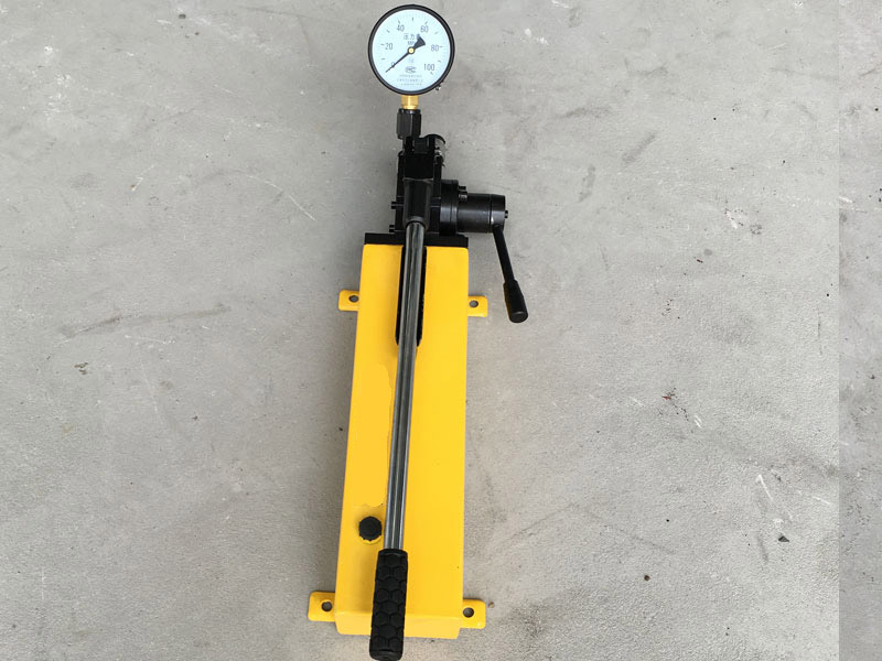 SYB系列手動泵是由軸向柱塞泵、組臺閥、油箱等組成的一種小型液壓泵站。該系列手動泵具有壓力高、體積小、操作方便等特點,特別適用于野外電源條件下作業(yè)。該泵可作為耐壓試驗泵用,當配備油缸或專用機具后可以進行起重、彎曲、調直壓型、剪切、裝卸等作業(yè)。